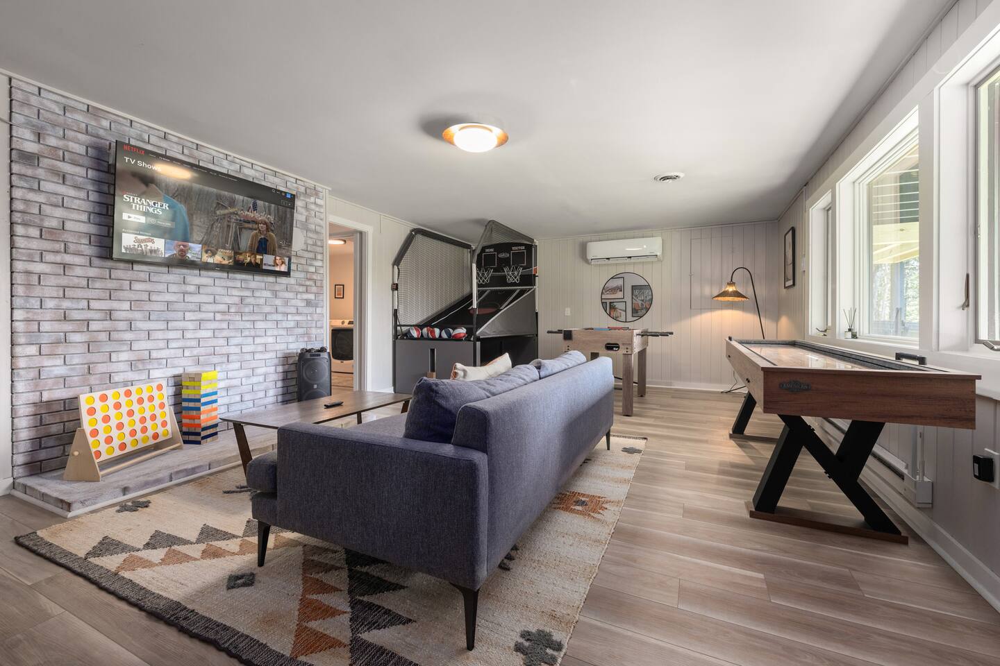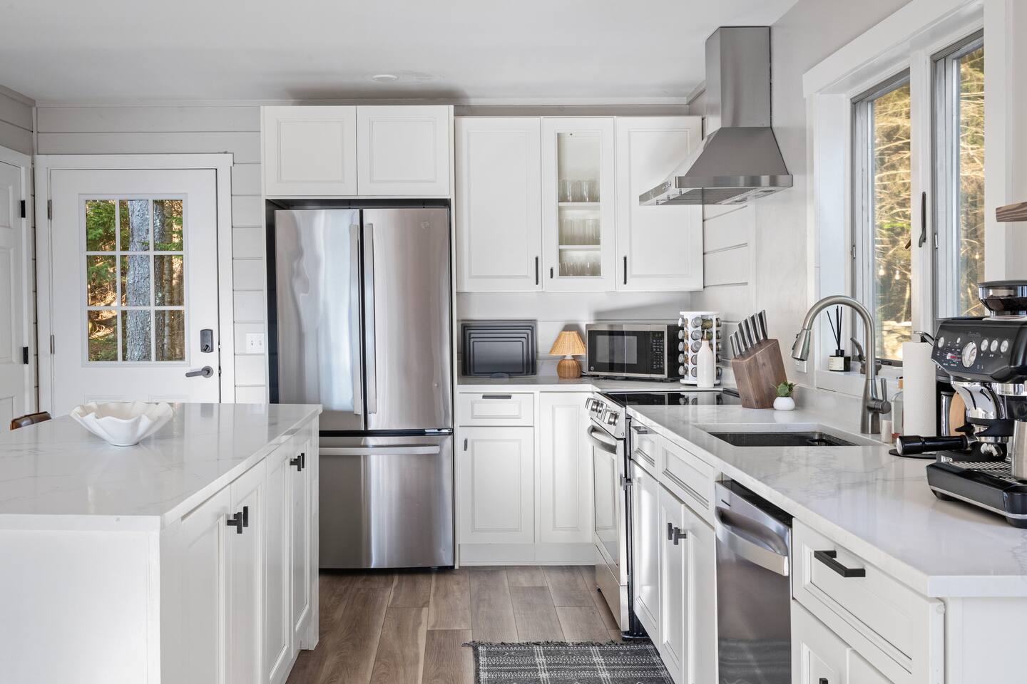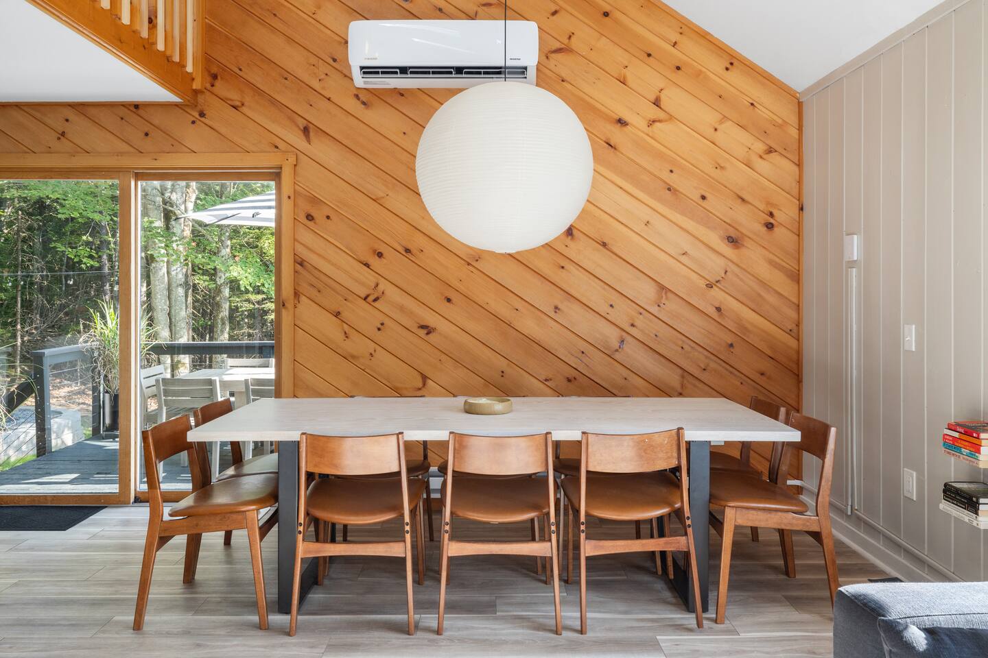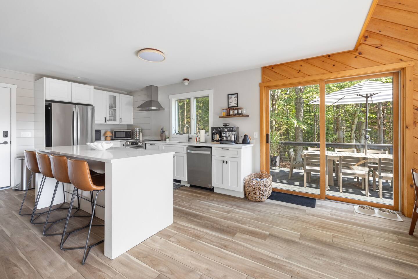 We are so excited to welcome you to The Peakview Lodge, a newly renovated, 4 bedroom, 3 bathroom chalet perfect for families and groups. With two king and two queen beds, it comfortably fits 8 guests. Dogs are welcome too (with a $100 per stay fee)! Additional amenities include toiletries, spa robes, a high chair, pack 'n play, collapsable baby tub, baby gates, board games, a record player, and a coffee bar complete with a Breville espresso machine. The chalet is 1.5 hours from Albany, 2.5 hours from Boston and 3.5 hours from New York. Please note: To see these incredible views, the property has a steep, gravel driveway. 4-wheel drive is required in winter months, and we recommend added chains or snow tires.